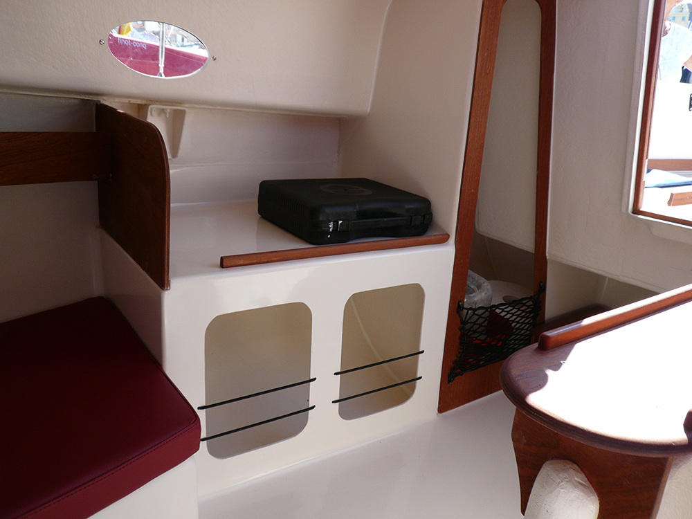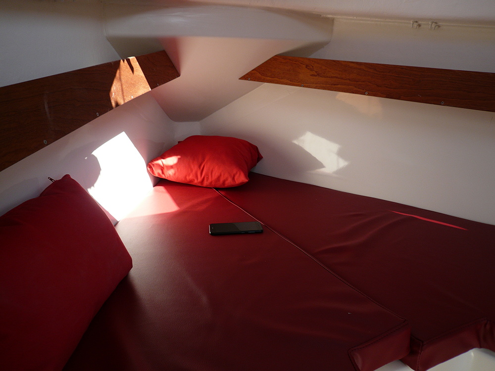 Sa cabine équipée permet à un couple et un ou deux enfants de passer quelques nuits à bord.