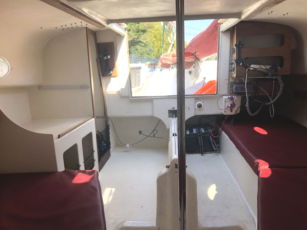 Sa cabine équipée permet à un couple et un ou deux enfants de passer quelques nuits à bord.